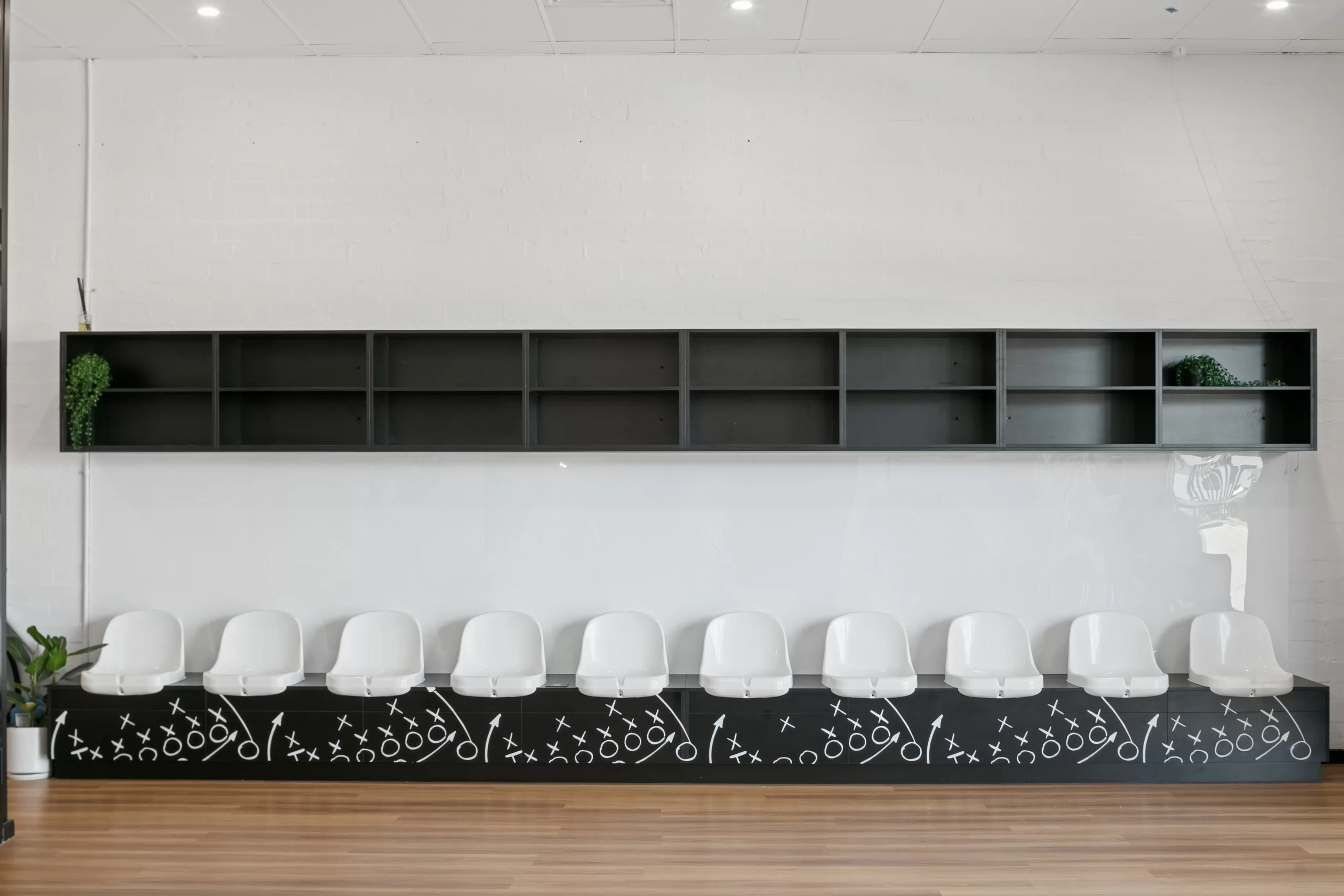 From custom black melamine joinery and integrated seating to synthetic turf installation and on-brand signage, every element was built to energise the experience and elevate the Combine Air identity.